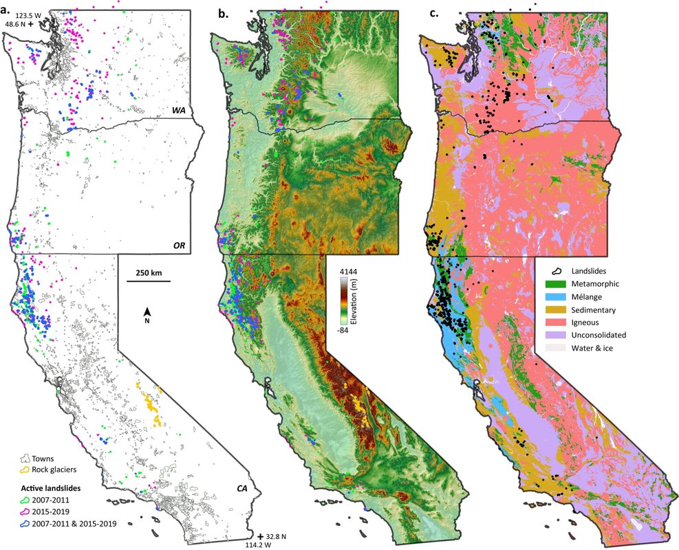 Geologic controls of creeping landslides over US west coast (Xu et al. 2021)